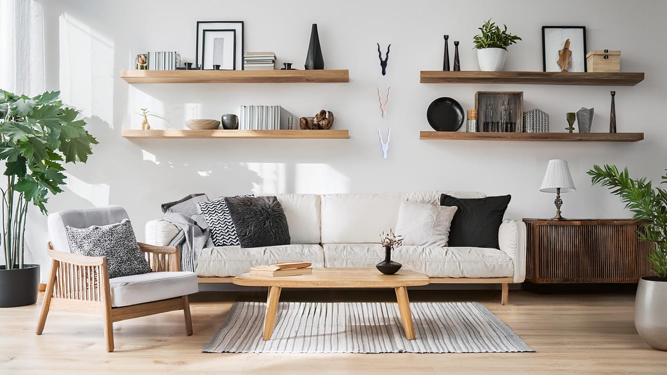 Eg. Consider adding wooden side tables, shelves, wall art or candle holders to bring in this earthy element.