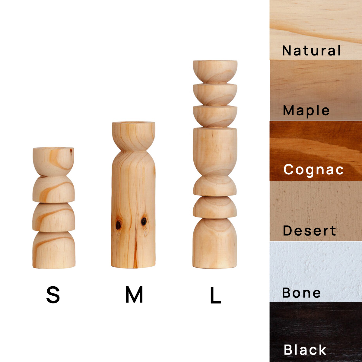 - Natural, Maple, Cognac & Black are wood stain finishes.