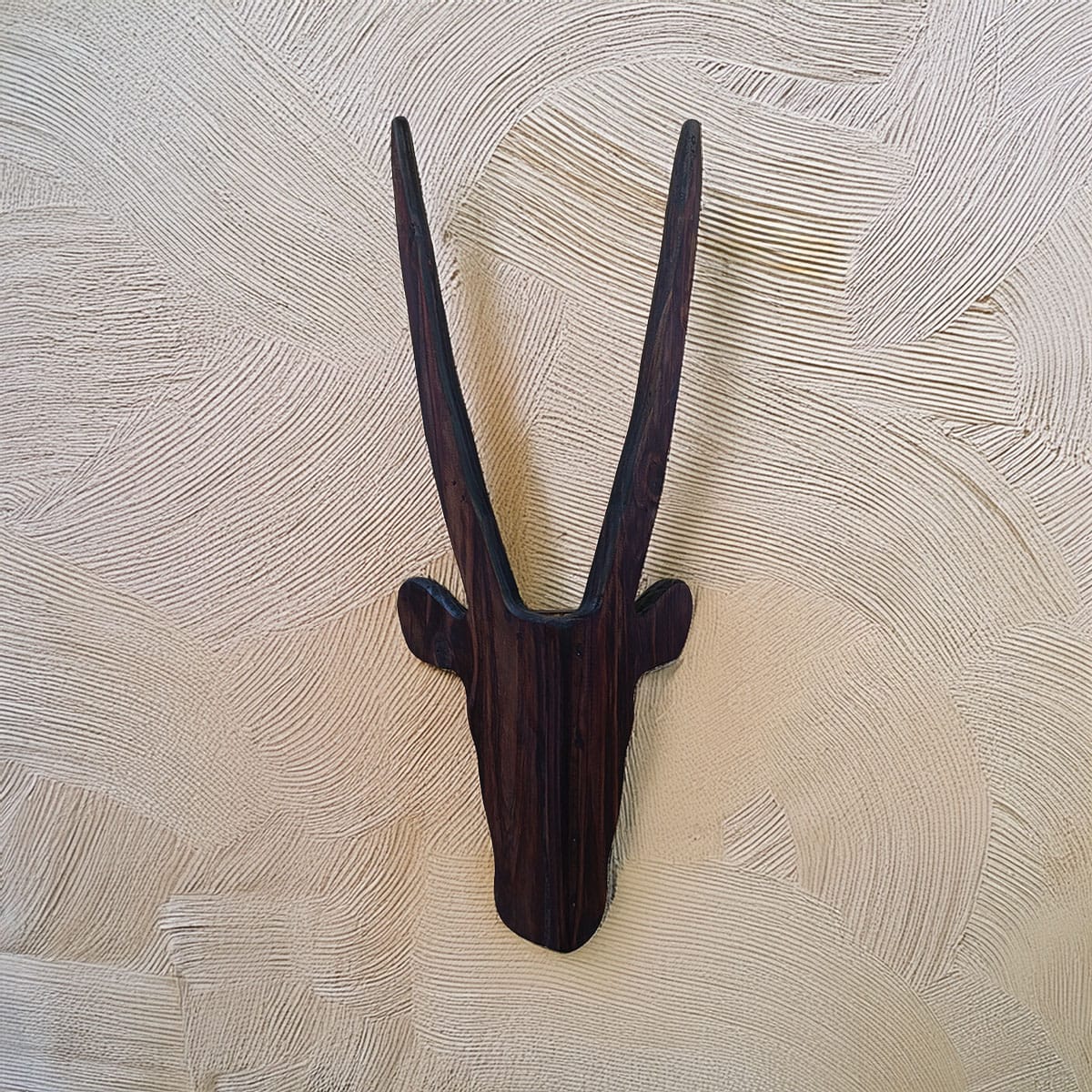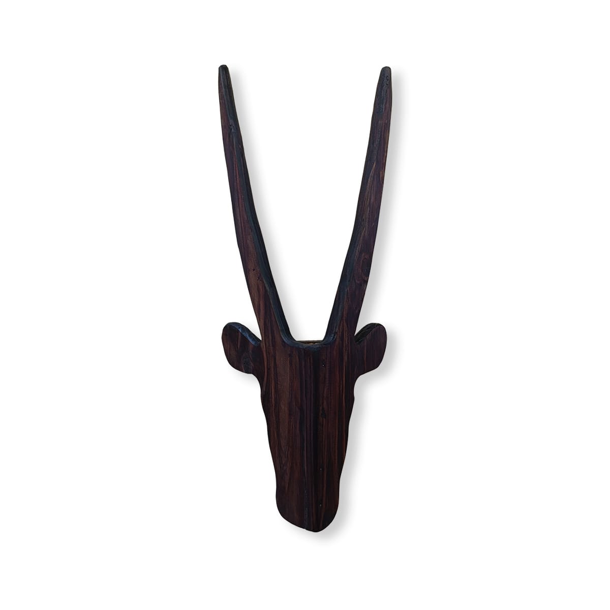 These Wooden Antelope Heads are made from Reclaimed Pine Wood and then treated with either a Medium Brown or a Dark Brown Wood Stain.
