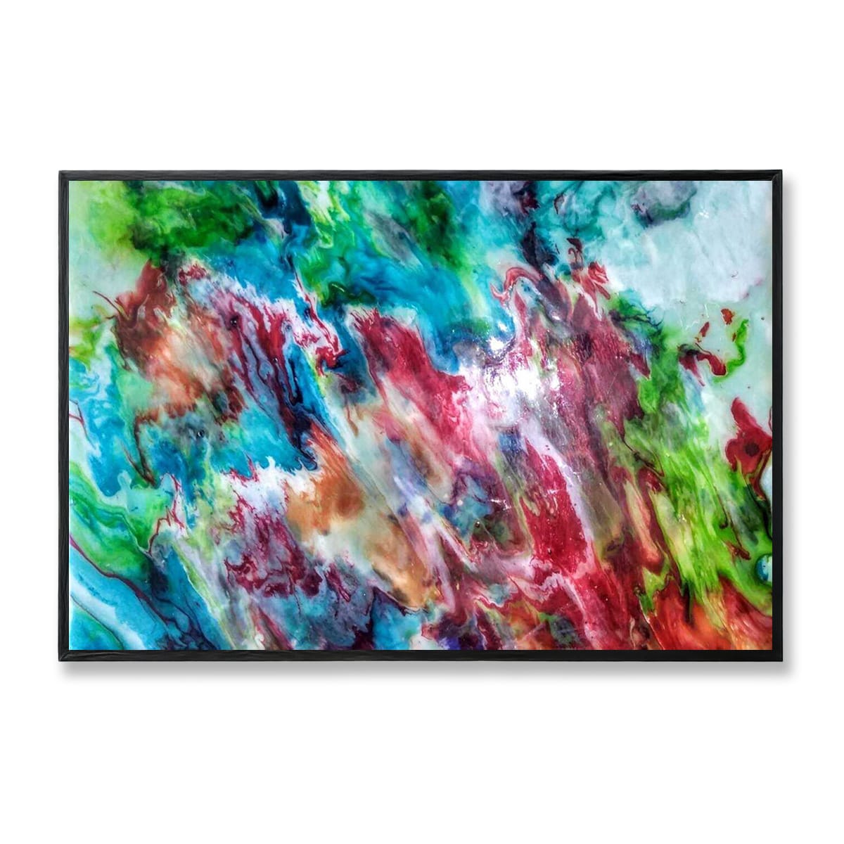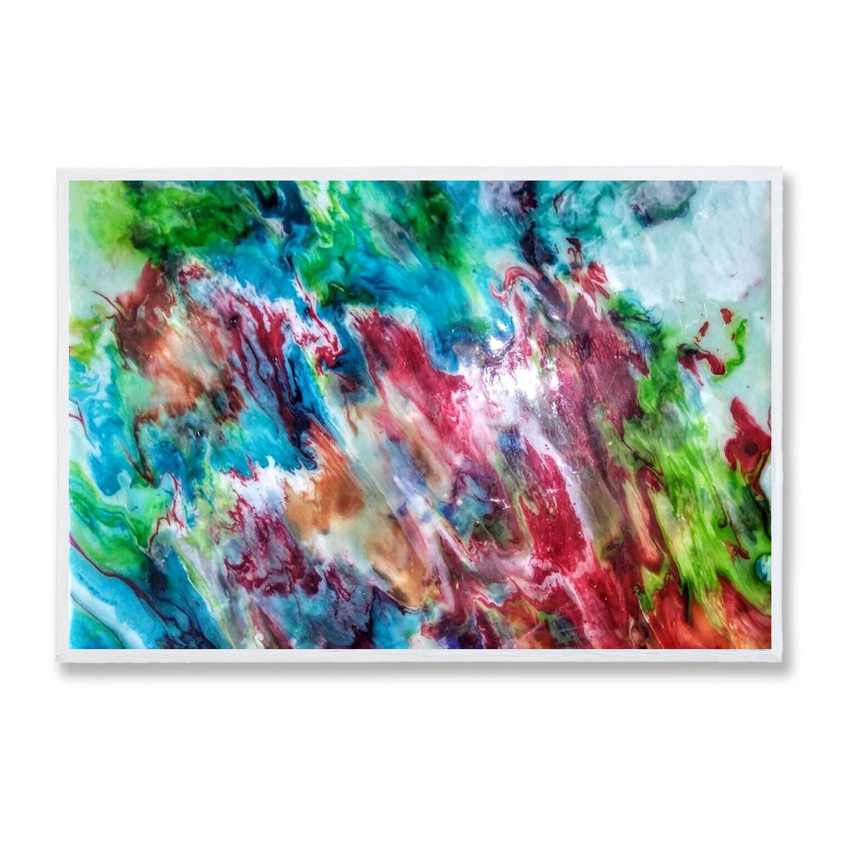 - This artwork has multiple bold colours, including Greens, Blues , Red, Orange, White, etc.