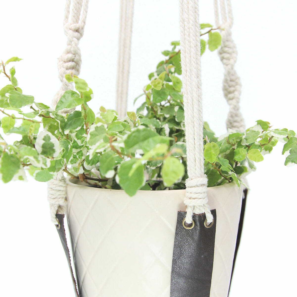 • The Slingervel – Macramé Plant Hanger is also available in Cotton & Mustard Leather, Jute & Black Leather and Jute & White Leather